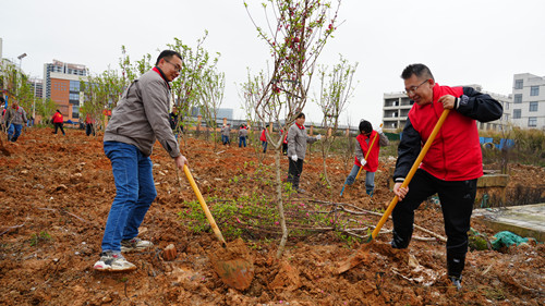 活動現(xiàn)場,黨員們熱情高漲。 大家分工協(xié)作,對土地進行平整美化, 清理雜草碎石,翻松土壤,揮鍬鏟土,扶苗填坑、培土,每一個環(huán)節(jié)都一絲不茍,現(xiàn)場呈現(xiàn)出一派熱火朝天的勞動景象。經(jīng)過一番辛勤勞動, 一棵棵新栽種的樹苗迎風(fēng)挺立,為校園增添了一抹新綠,也種下了春天的希望。